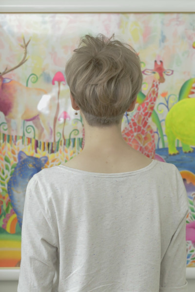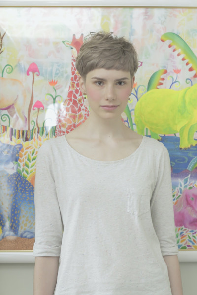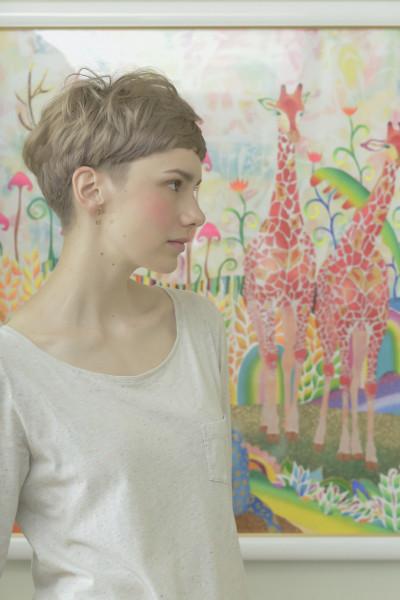 ップに動きを持たせ毛先の無造作な動きで自然なエアリー感を★眉上バング・ツーブロック・ベリーショート・アッシュベージュ夏・ポイントパーマ