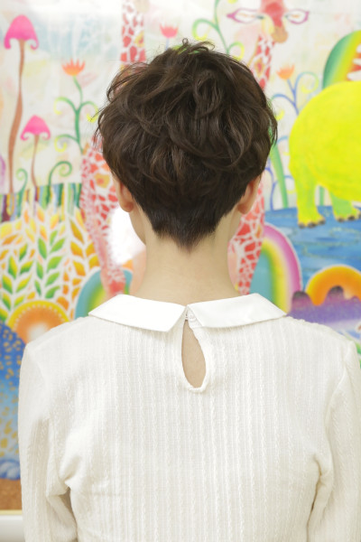 ヘアスタイル詳細 注目のショートバングでボーイッシュで大人かわいい外国人風に。コンパクトなシルエットのショートヘアーは、あえての暗めカラーで。くせ毛風に空気感を出すことで小顔効果も◎ スタイリングアレンジポイント:8割程度乾かした後、WAXを付けて柔らかく揉み込めば完成!空気感を作るため、束感が出るよう手グシで整えるのがポイント!パーマをかけるとスタイリングが簡単に♪
