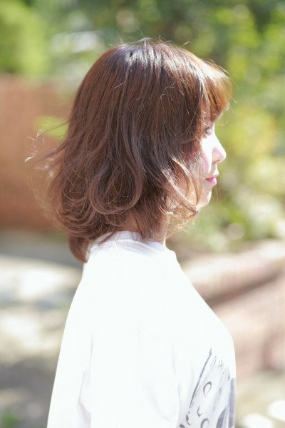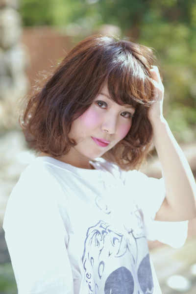 全体にレイヤーを入れた、ゆるふわレイヤーボブスタイル。 ランダムに巻いた後、柔らかめのワックスをもみこんでほぐすだけ!